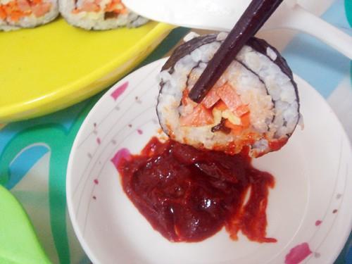 用料 主料:大米 250克 調(diào)料: 黃瓜 一根 火腿 一根 雞蛋 2個 紅蘿卜 一根蝦鄉(xiāng)稻大米小壽司的做法1.首先正蒸蝦鄉(xiāng)稻大米飯,準備好胡蘿卜,香腸,雞蛋片,咸菜。并且都切成條狀!還有紫菜片,壽司簾(…