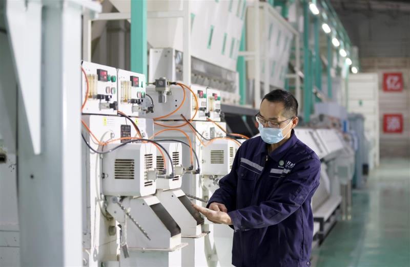 3月20日,湖北蝦鄉(xiāng)食品股份有限公司的工作人員在大米自動化生產(chǎn)線巡查生產(chǎn)情況。該公司是國家農(nóng)業(yè)產(chǎn)業(yè)化重點龍頭企業(yè),日可處理稻谷500噸以上。公司長期與省農(nóng)科院等科研院所合作,將秈稻與粳稻復(fù)配選育稻種后推廣,采取稻蝦生態(tài)種養(yǎng)模式,在潛江9個鄉(xiāng)鎮(zhèn)以及周邊監(jiān)利、公安、天…